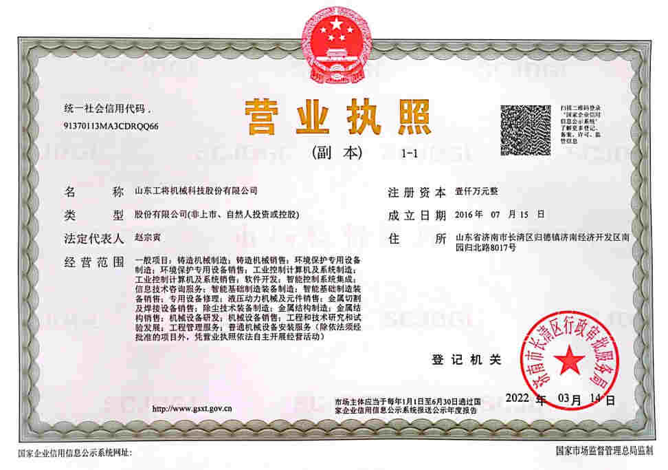 山東工將機(jī)械科技股份有限公司