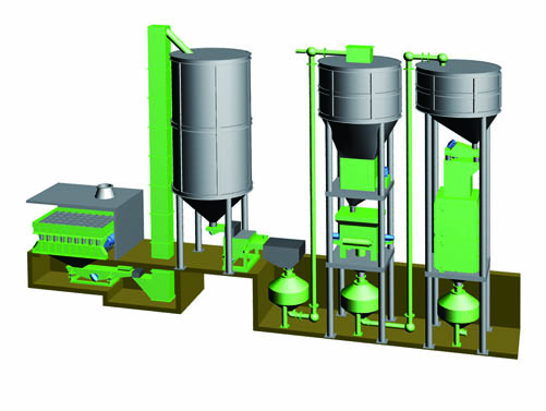 輸送(提升機)→(沖擊再生)→風選調(diào)