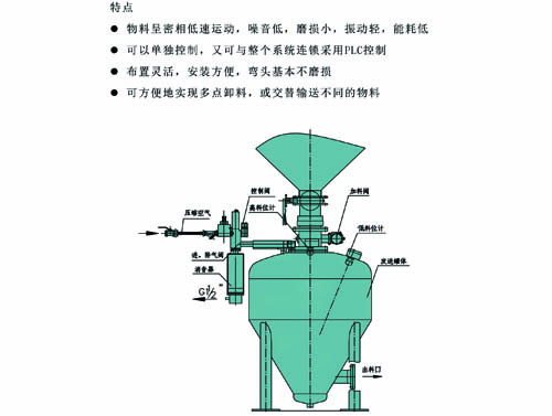 1. 物料呈密相低速運動,噪音低,磨損小,振動輕,能耗低
